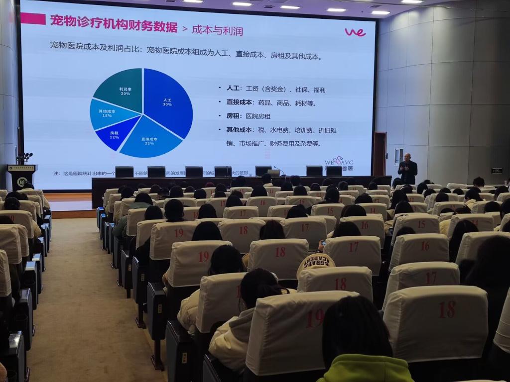 赖晓云博士为同学们介绍了宠疗行业的基本情况,宠物诊疗机构的专科特色、经营规模、人员构成、财务数据、营销模式,宠物医疗设备企业现状、行业政策以及发展趋势。讲座过程中,赖博士与同学们进行了互动,现场氛围热烈。