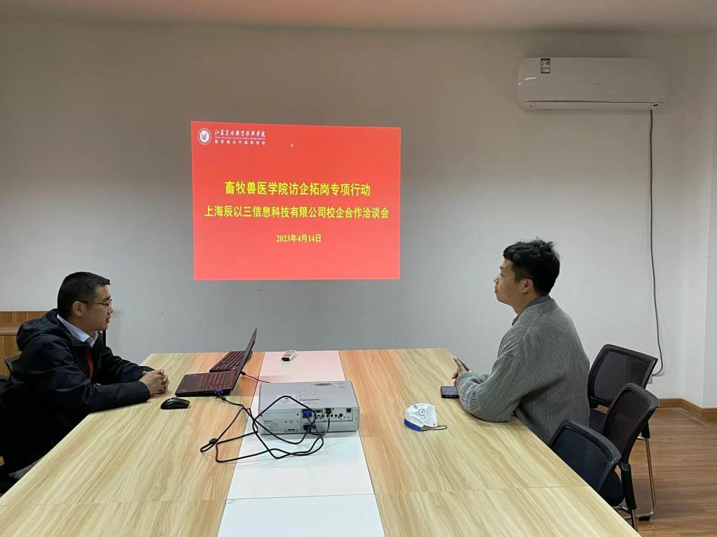 4月20日,上海辰以三信息科技有限公司、通威拜欧玛(无锡)生物科技有限公司进校洽谈校企合作,学院党总支副书记赵彬、水产教研室杜婕老师、学工办彭瑶老师参会。