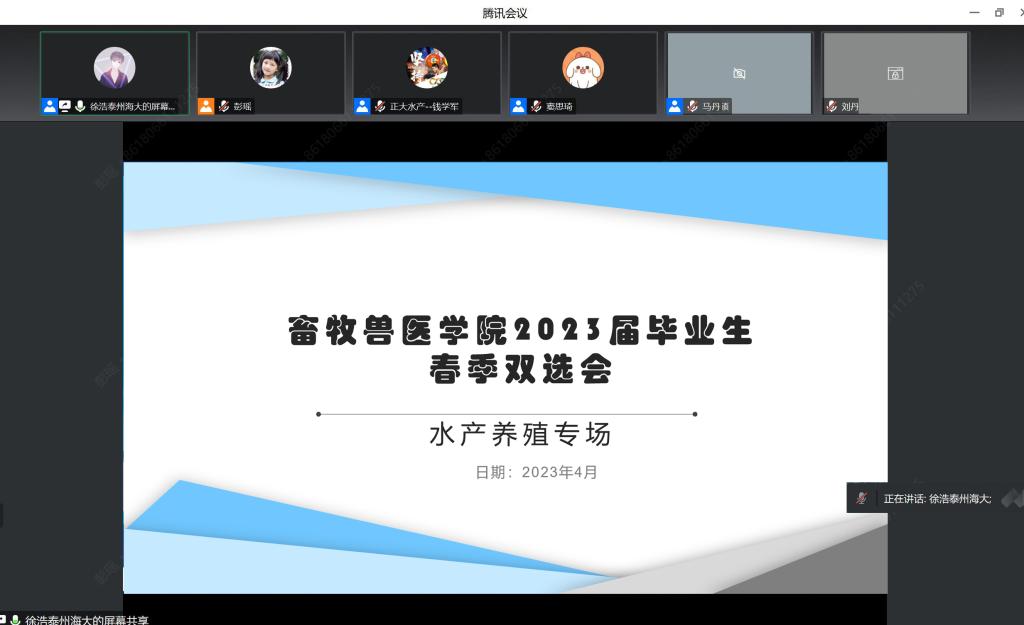4月10日,畜牧兽医学院组织召开2023届毕业生春季水产养殖类专场线上双选会。