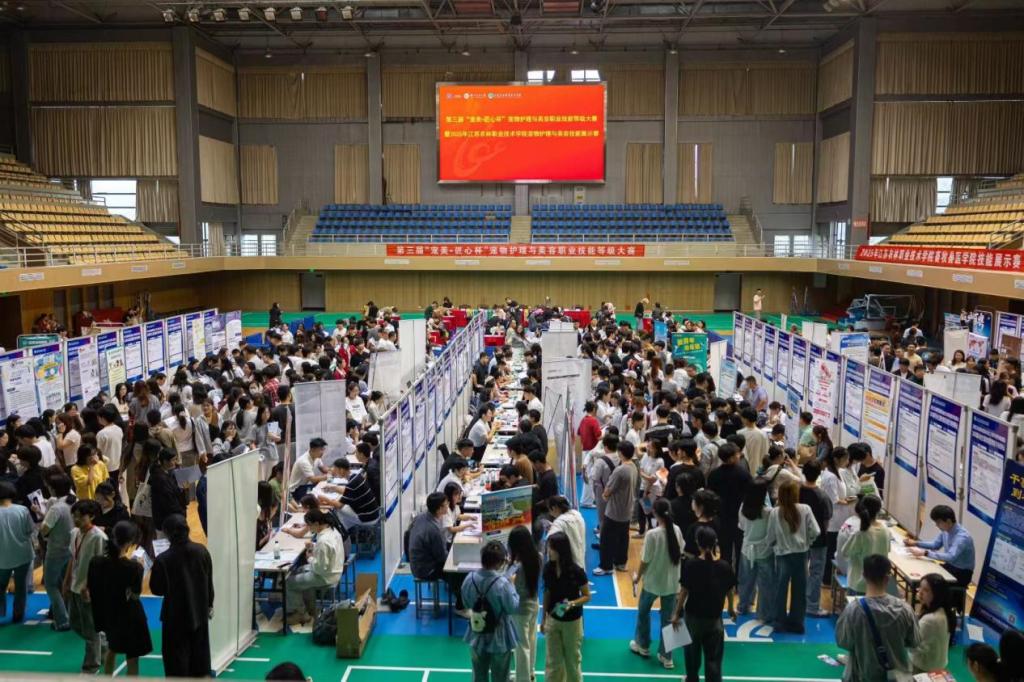 为助力2026届毕业生实现高质量充分就业、展示牧医学子宠物美容技能,10月12日,畜牧兽医学院在校体育馆成功举办专场招聘会。学院党委委员、副校长王瑾,江苏省畜牧兽医学会秘书长张则斌莅临现场指导。