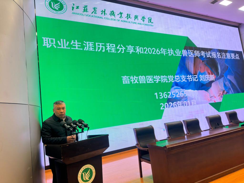 讲座伊始,刘庆新书记以“上大学的目标”为切入点,引导同学们展开深入思考。随后他结合畜牧兽医行业的发展趋势,通过历届毕业生就业典型案例,细致剖析了新时代大学生面临的就业机遇与挑战,帮助学生进一步明确未来发展方向。此外,刘书记还围绕2026年全国执业兽医考试的重要时间节点及复习备考要点作了详细介绍,鼓励同学们早做准备、科学规划、系统复习。