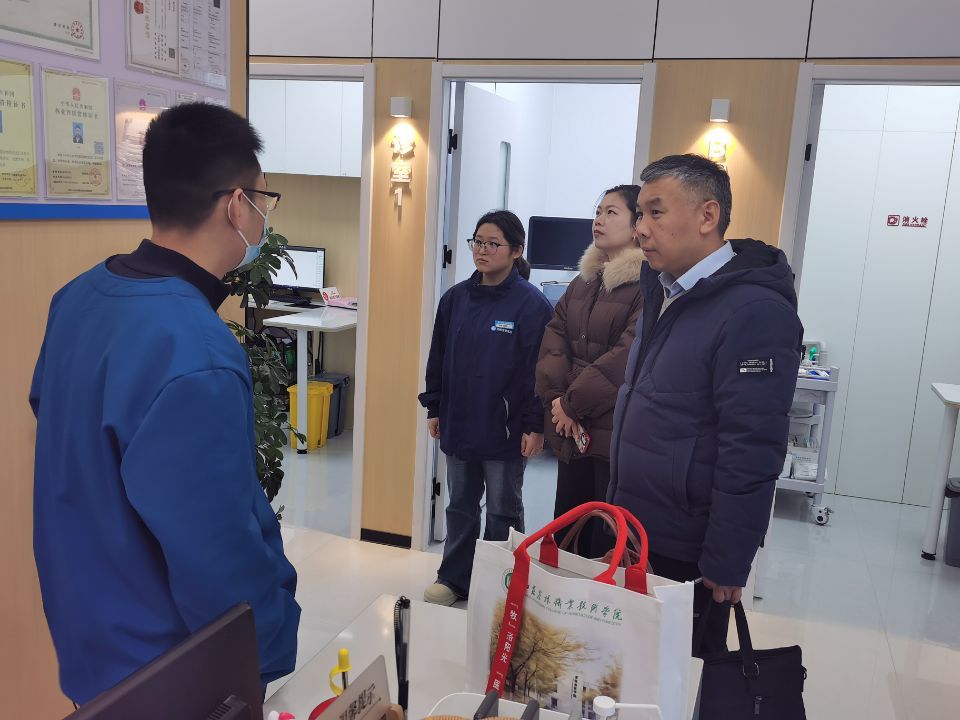 2026年1月20日,学院党总支书记刘庆新率队赴苏州新瑞鹏和苏州安妮宠物医院开展企业走访和看望实习学生。