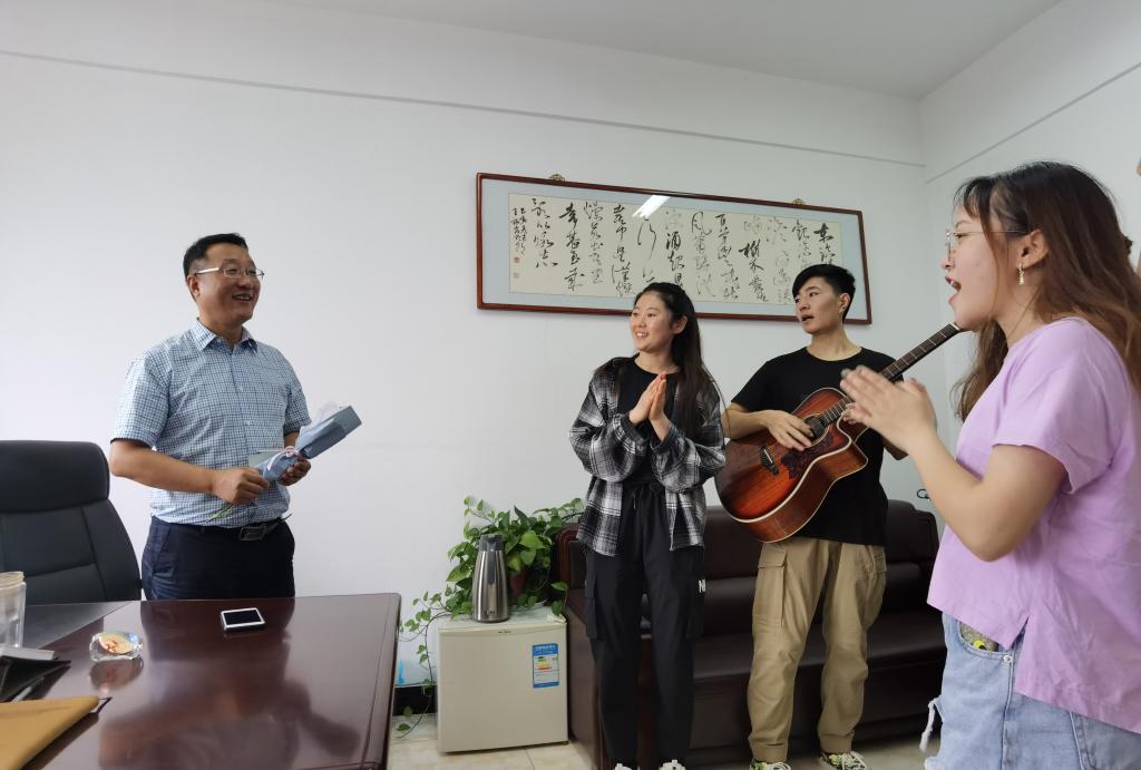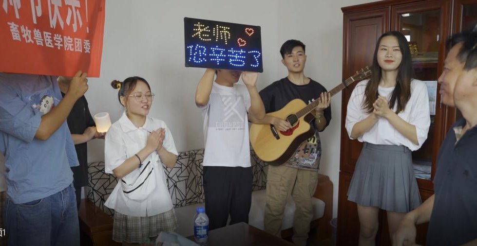 第36个教师节来临之际,9月9日-10日我院的同学们自发组织小合唱团,举着“祝老师节日快乐”的横幅和灯光板,弹着吉他,以快闪的形式为老师奏唱祝福歌,歌颂师恩,表达对全体教师节日的祝福!老师们收到惊喜的同时,也收获到同学们浓浓的祝福,脸上露出会心的笑容!活动吸引了众多老师和同学驻足观看,大家纷纷拿起手机,定格下这温馨美好的瞬间。