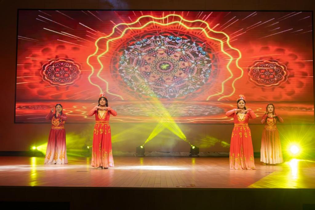 音乐会以动感十足的开场舞《Jump》拉开序幕。随后的《Latin Baby》以灵动拉丁风情展现异域魅力,民族舞蹈《星空下的麦西来甫》则传递出浓郁文化韵味。俏皮的《企鹅舞》引发现场欢笑。整场演出中,《犬届风尚大秀》成为焦点,萌宠与学子默契配合,收获热烈掌声。最终,音乐会在全体合唱《童年时光机》中落下帷幕。