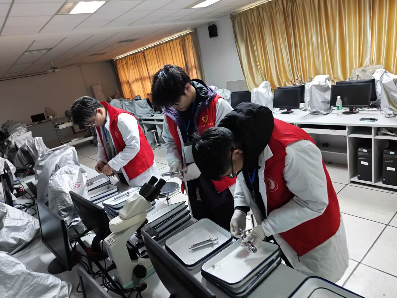 活动当天,志愿者们提前到岗,统一着装,分布在考点入口、考场通道等重点区域,协助考务人员进行秩序维护、实验材料准备、考生引导及应急服务。
