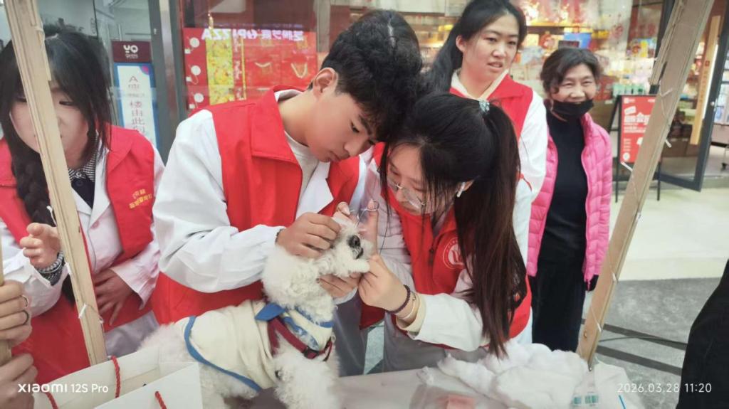 3月28日,以“科学养宠·悦享健康”为主题的宠物养生节在南京玉桥商业广场一楼中庭举行。本次活动依托全国宠物养护行业产教融合共同体,由学院畜牧兽医学院与南京玉桥商业广场联合主办,学院“爱宠社”师生团队全程策划执行。