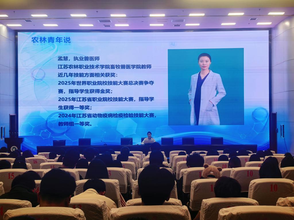 优秀校友、句容市天王畜牧兽医站站长何超结合基层工作经历,分享扎根乡村、服务畜牧一线的实践历程,讲述荣获全国技能大赛一等奖、江苏省五一劳动奖章等成长故事,并以“三牛精神”鼓励学弟学妹立足农林、服务乡村振兴。