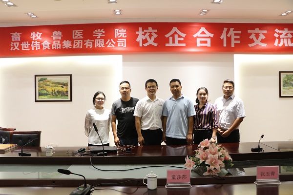 9月25日下午,畜牧兽医学院与汉世伟食品集团校企合作签约仪式在学院中层干部会议室举行。畜牧兽医学院副书记刘庆新、汉世伟食品集团总裁曲向阳、招聘经理经玉青、童莎莎、祁磊,技术管理部经理郁松出席了签约仪式,仪式由徐达明老师主持。