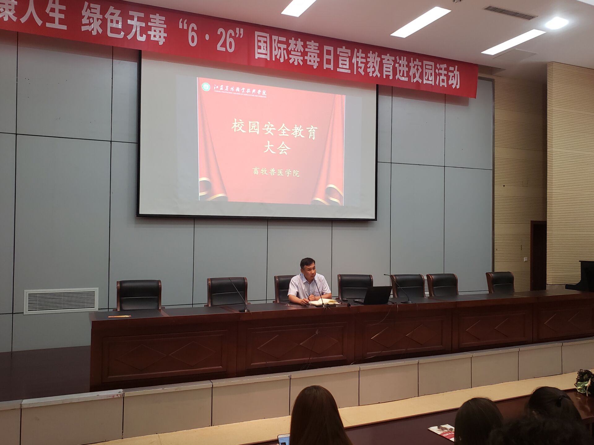 2019年6月10日下午,由畜牧兽医学院刘庆新副书主持的安全主题教育大会在研发楼报告厅举行。
