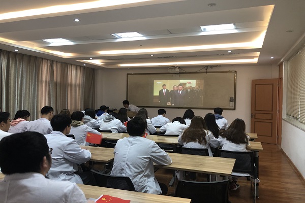 纪念五四运动100周年大会于2019年4月30日上午10时30分在人民大会堂举行。中共中央总书记、国家主席、中央军委主席习近平出席大会并发表重要讲话。畜牧兽医学院团委组织30余名团员青年和团干部在畜牧兽医学院三楼会议室集中收听观看纪念五四运动100周年大会直播活动。