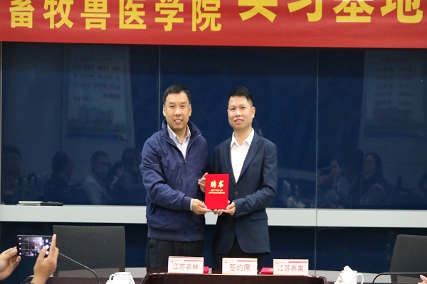 走访教师们实地了解了毕业生的学习、生活、工作现状,与用人单位就跟岗实习学生的培养、管理等方面问题进行了深入地沟通交流,并现场签订校企合作协议,举行了实习基地挂牌、企业导师聘用仪式。单位负责人对畜牧兽医学院实习生的表现给于了充分肯定,表示今后希望可以进一步加强与学校的校企合作,实习生也向老师们汇报了培训期间的收获与感受,并对学校老师们的亲切关心,表示感谢。