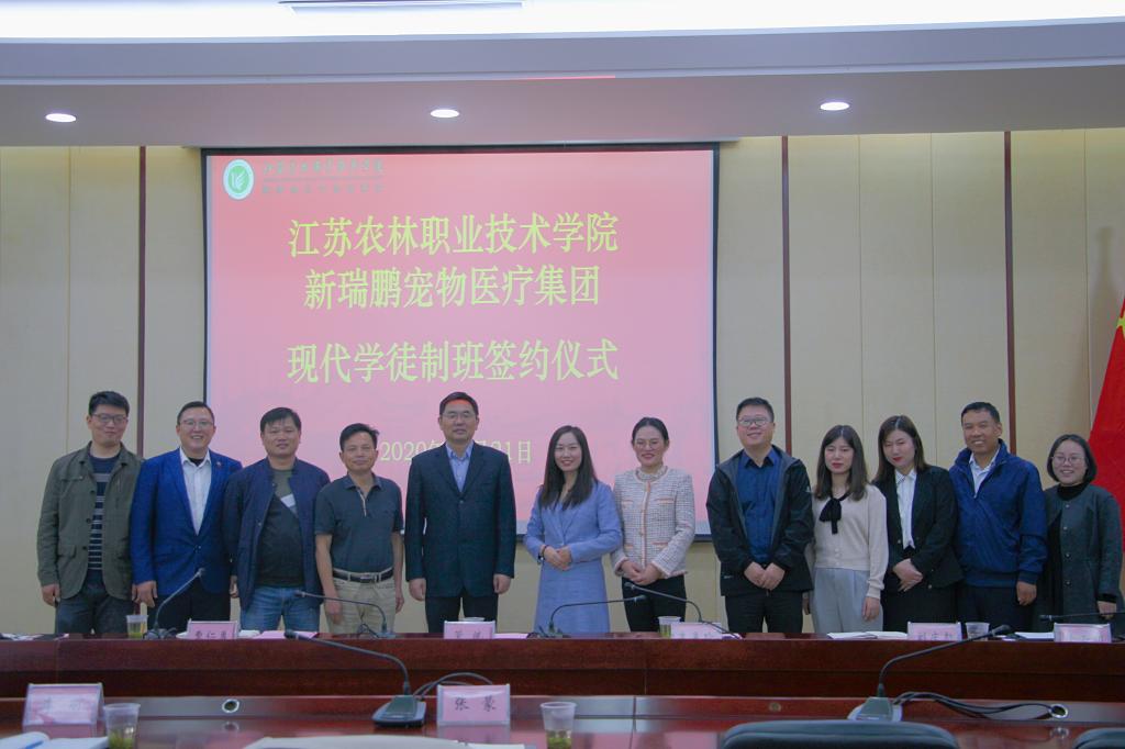 随后,曹仁勇副校长代表学校与李丽副总裁签署了“新瑞鹏”校企合作协议及现代学徒制班合作协议,并合影留念。校学生工作处以及畜牧兽医学院相关负责人参加了签约仪式。