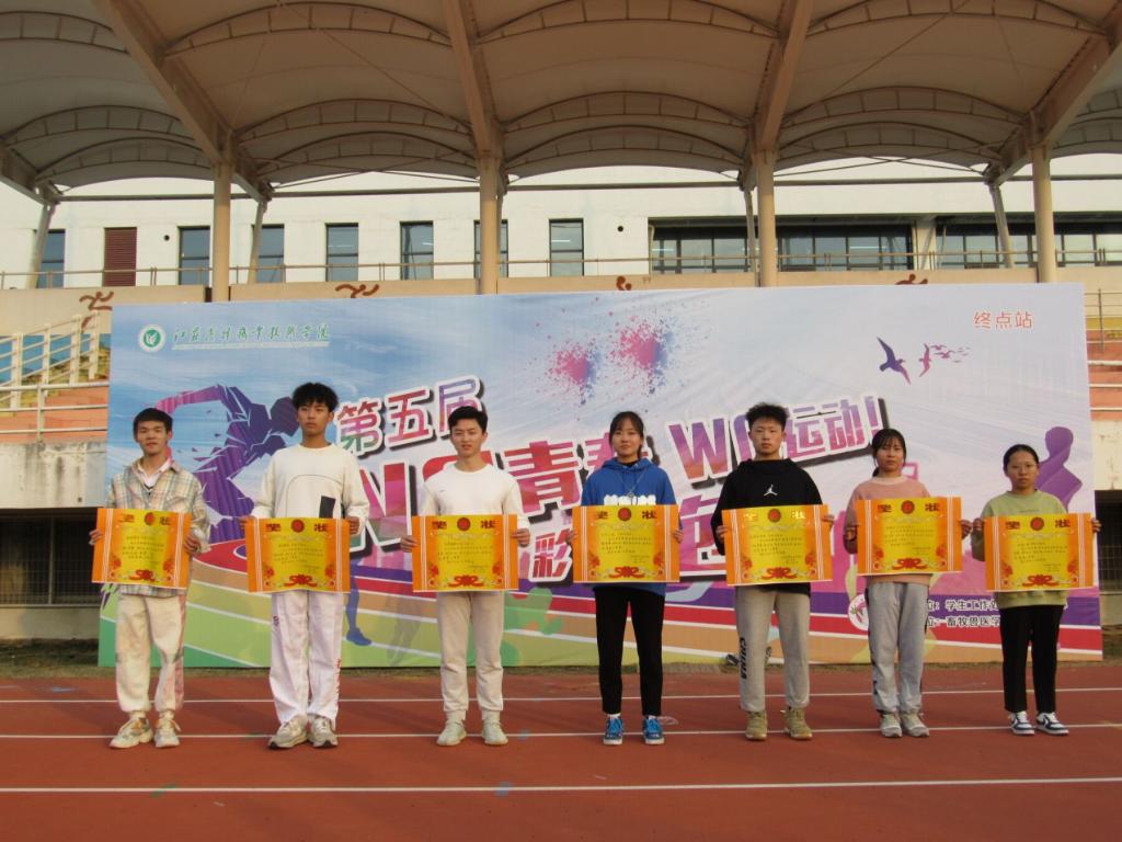 参赛选手们在引导员的带领下,由图书馆正门出发,全程共经过设立于励志广场、体育馆、篮球场及足球场等地的红、橙、黄、绿、蓝五个彩色站,且每个彩色站都有工作人员向参赛选手喷洒彩色粉末,途中的“幸运666”、“手忙脚乱”、“乒乓交响曲”、“单脚火车跑”、“袋鼠跳接力”等趣味游戏让欢笑声充满校园的各个角落。经过激烈角逐,风景园林和我院代表队荣获一等奖、经济与人文学院代表队荣获二等奖、其他四个二级学院荣获三等奖。