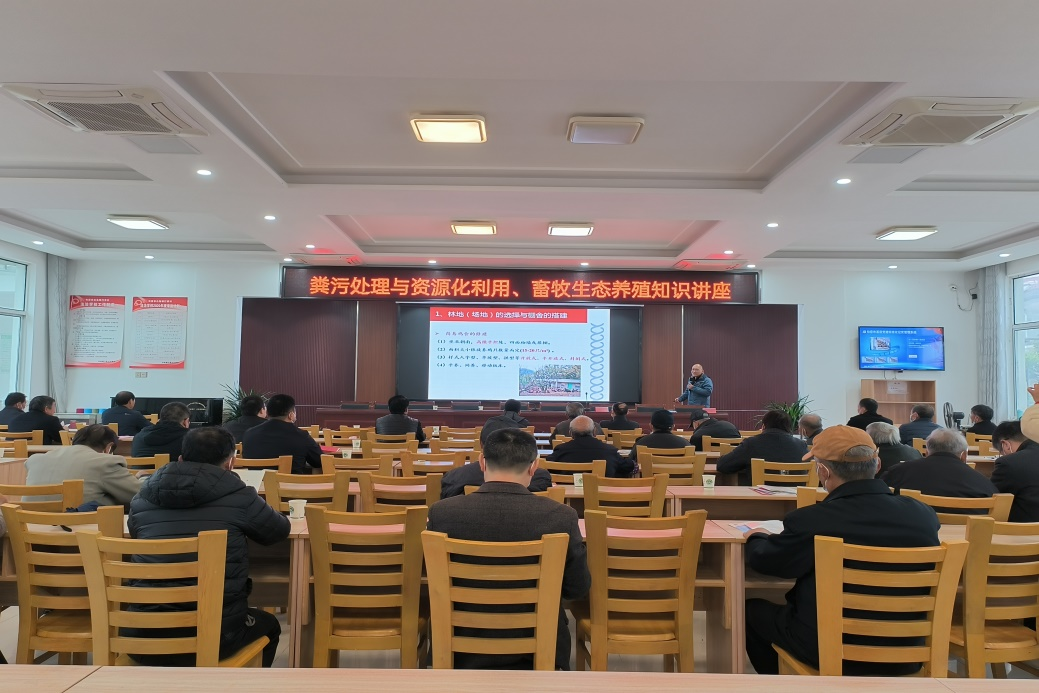 第二阶段为科技宣讲。畜牧兽医学院副院长杨剑波、驻村专家宋春雷博士分别就粪污处理与资源化利用和畜禽生态养殖做了科技宣讲,并分发相应宣传册。