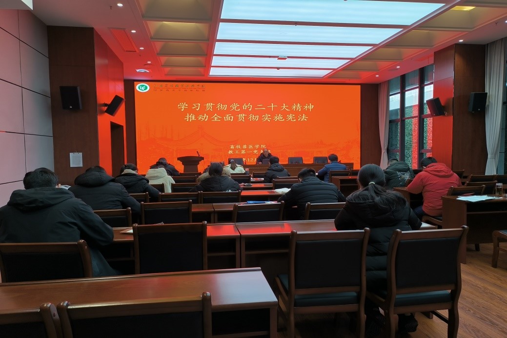党的二十大报告对加强宪法实施和监督提出明确要求,强调要健全保证宪法全面实施的制度体系。为加强宪法学习宣传,弘扬宪法精神,12月14日在大学生艺术中心报告厅(101),畜牧兽医学院教工第一党支部开展了“学习贯彻党的二十大精神,推进全面贯彻实施宪法”学宪法讲宪法活动。此次会议由支部书记徐云明主持,支部全体党员出席会议。