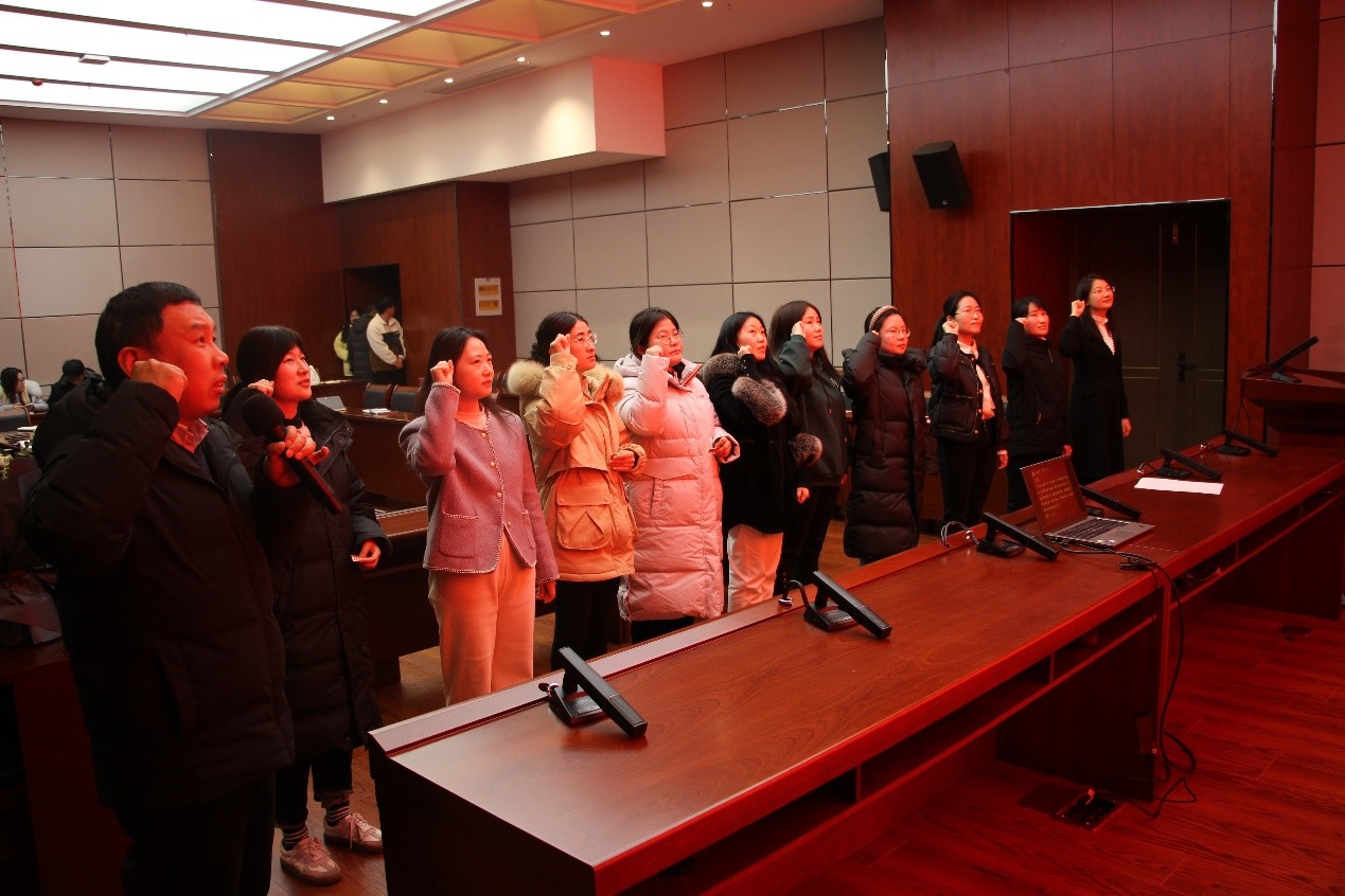 随后,举行了青年教师结对培养启动仪式。刘书记宣读了结对培养方案及结对名单。指导教师为青年教师佩戴校徽,并进行了教师誓词宣誓仪式。汪善锋院长重点讲述了结对培养的意义,对青年教师在培养期间的任务做了阐述,希望指导老师承担起责任,新进青年教师沉下去虚心向指导老师请教,结对双方树立“教学相长、互助互学、共同成长”的意识,互学共进,敬业奉献,为建设学院高素质教师队伍做出更大的贡献。刘书记做总结发言,希望要结合岗位和专业,开展好教学、科研和社会服务工作,同时要多方位多角度关心学生,做实做好班主任工作。