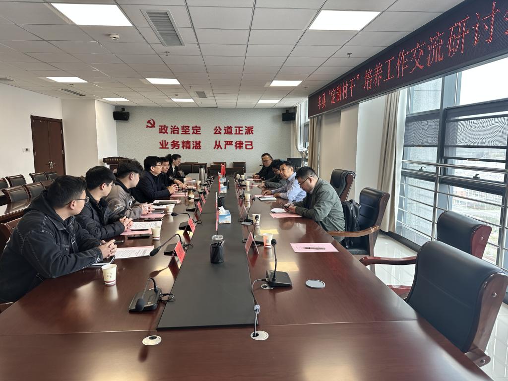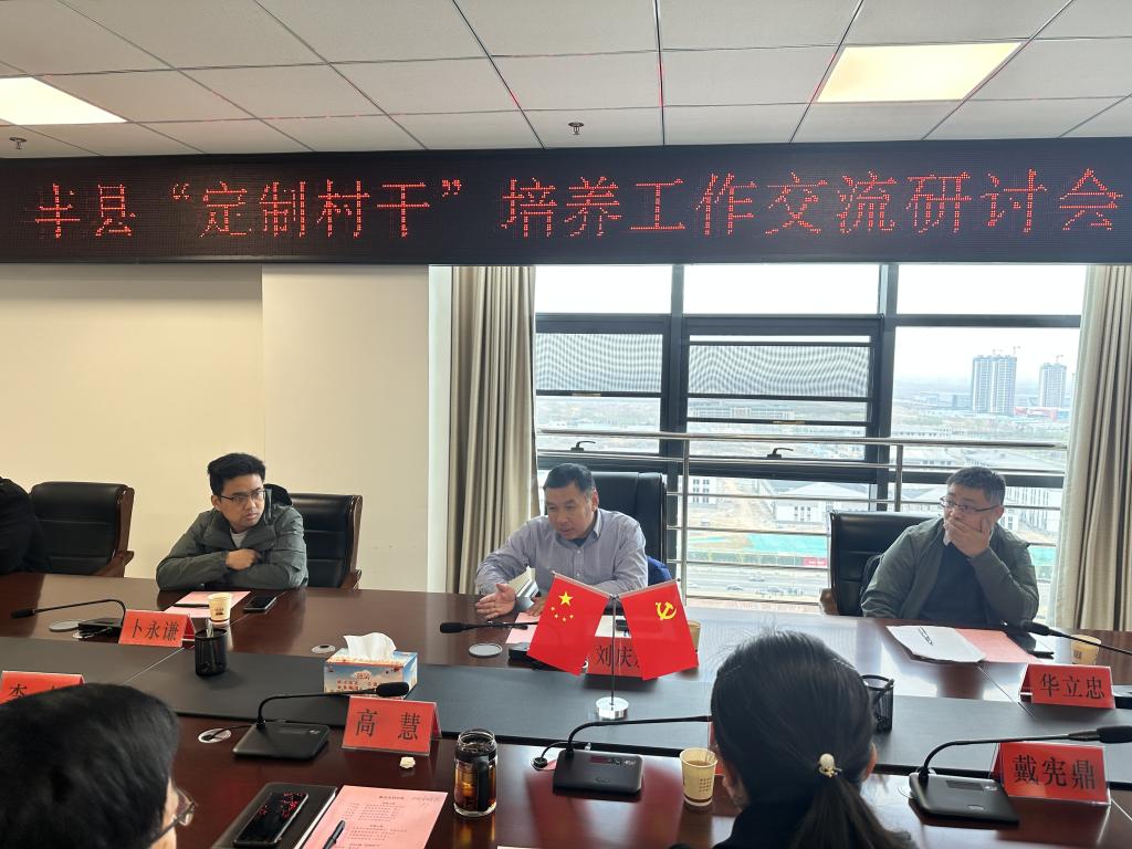 3月25日上午,我院党总支副书记刘庆新与部分招生老师一行赴江苏省丰县组织部商讨“定制村干班”招生动员及人才培养工作。丰县县委组织部常务副部长、党建办主任高慧,丰县教育局党委委员、招办主任李钊及相关负责人参加了此次座谈会。
