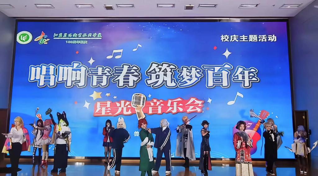 音乐会现场,舞者、歌手轮番登场,开场舞《KPOP串烧》点燃全场,cos表演秀引来现场阵阵欢呼,《都是月亮惹的祸》《红日》《龙卷风》《忘记时间》等一首首经典的旋律,忘我的演唱赢得了现场观众热烈的掌声和呐喊,现场观众们随着节奏挥动着手中的荧光棒,在欢快愉悦的氛围中,大家用舞蹈和歌曲为百年农林送上最诚挚的祝福!