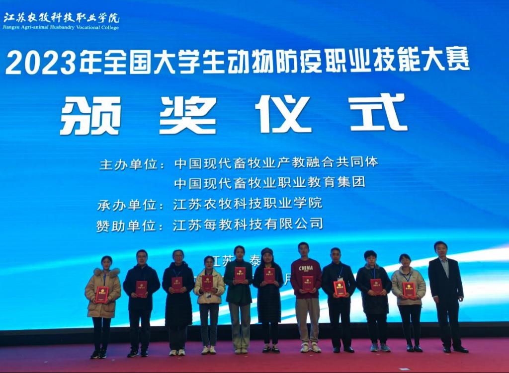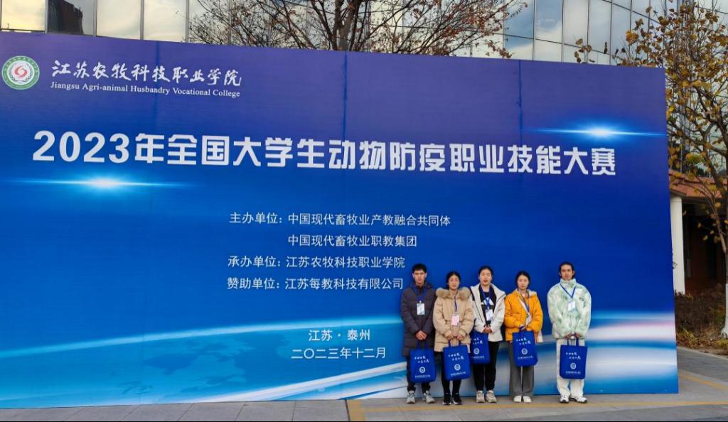 2023年12月9-10日,全国大学生动物防疫职业技能大赛决赛于泰州举办。我院动物医学专业学生许志芹、王博辉、孙哲豪三名同学组成的代表队,在张婷、林家琪两位教师的指导下,凭借扎实的专业知识和娴熟的实践技能,沉着应对,细心操作,表现出色,在有限的比赛时间内充分展示出训练水平,最终荣获一等奖。