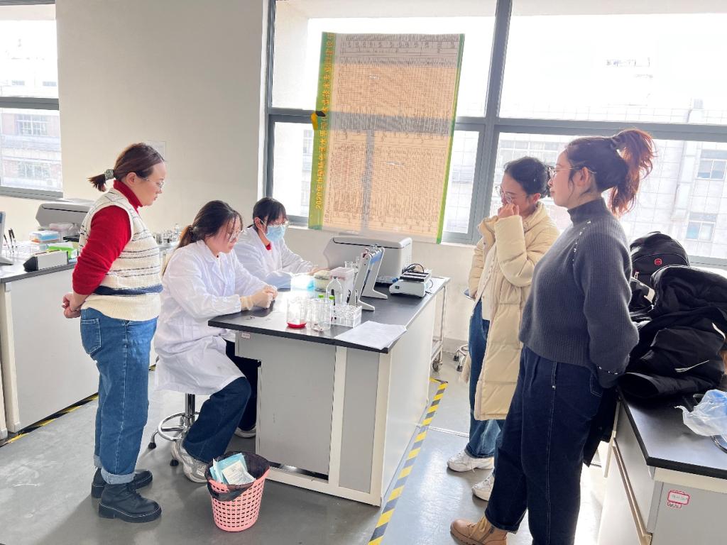 2023年12月21日江苏护理职业学院卫生检验与检疫技术专业带头人张小羡主任一行5人前往我院进行动物疫病检疫检验技能大赛学习交流。动物医学系主任刘国芳、专业骨干教师张华、孟慧接待张主任一行。双方就动物疫病检疫检验技能的一些问题进行探讨,同时双方参赛选手还进行了比赛内容的展示,双方共同分享操作过程中的一些经验。