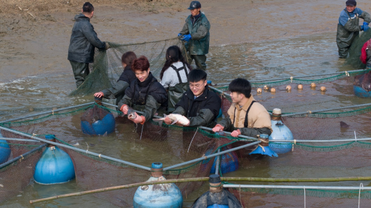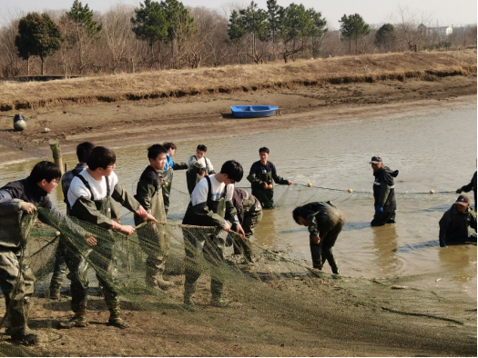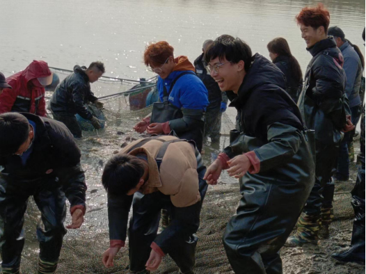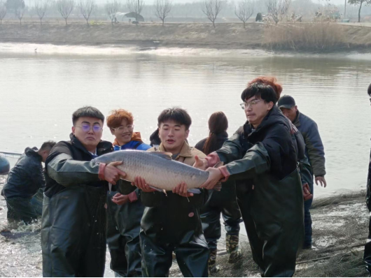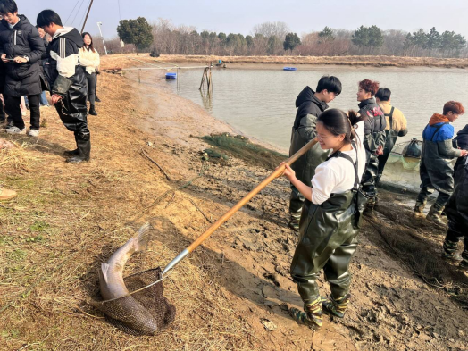 为全面贯彻党的教育方针,认真落实《关于全面加强新时代大中小学劳动教育的意见》精神,大力弘扬“劳动光荣、技能宝贵”的时代风尚与工匠精神,2024年1月9日-1月12日,正值渔业丰收季,我院动物科学系组织水产养殖学(4+0)、水产养殖技术2个专业4个班级参加了在句容市南河农庄开展的“耕塘牧渔铸匠心,鱼跃人欢庆丰年”劳动教育实践活动。副院长王煜恒、水产专业教师杜婕、张坤等参加本次劳动实践。南河农庄总经理、镇江市劳动模范吴其法及句容市五一劳动奖章获得者吴琼共同指导学生参与本次冬季捕鱼实践活动。