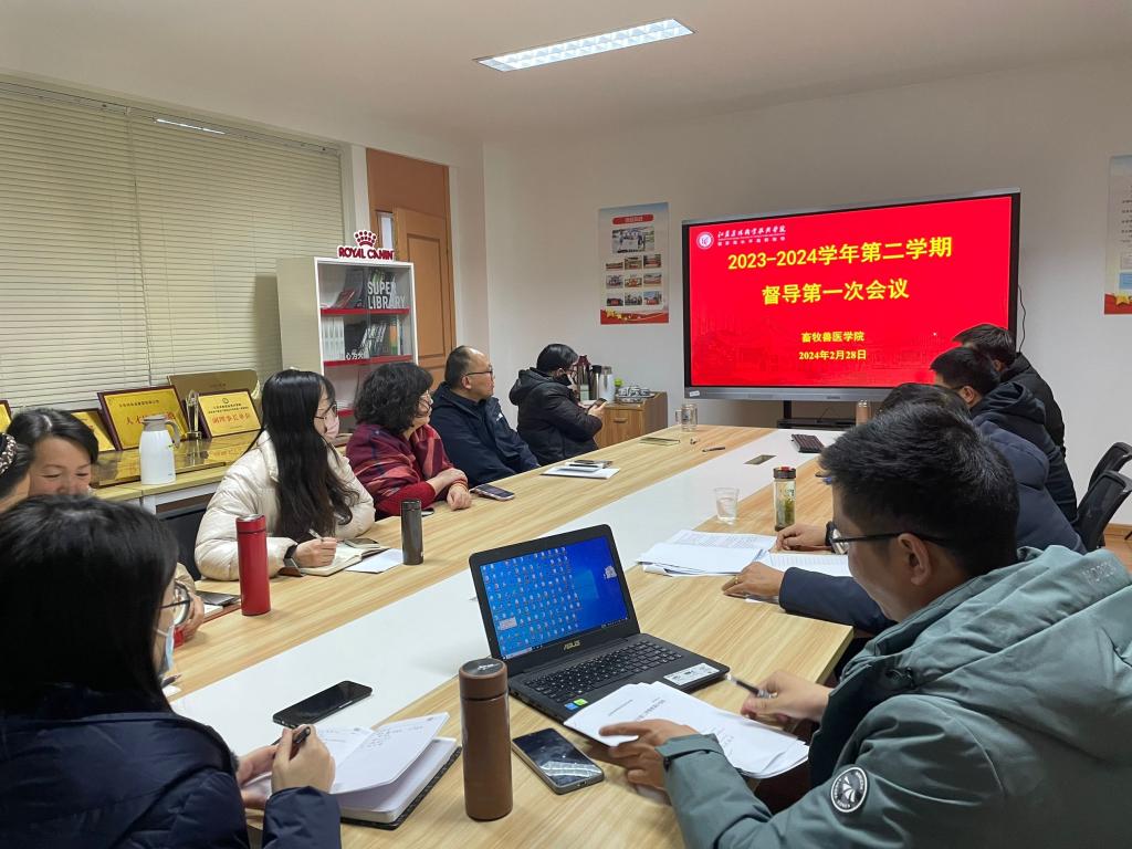 2月28日下午,畜牧兽医学院召开2023-2024学年第二学期教学督导会议。学院院长汪善锋、教学副院长王煜恒、专职和兼职督导人员参加了会议。