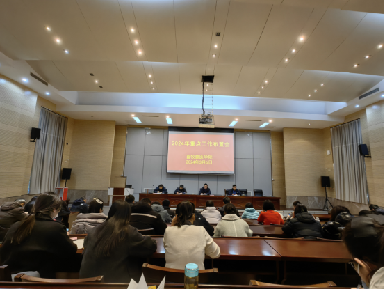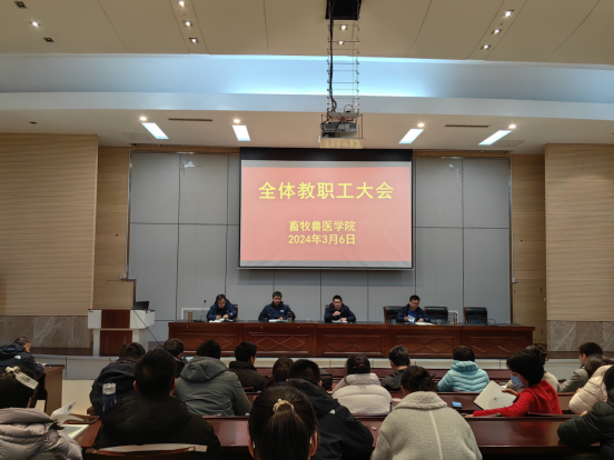 2024年3月7日下午4点, 我院在研发楼报告厅召开全体教职工大会,副院长杨剑波、王煜恒,副书记赵彬出席会议,院长汪善锋主持会议。