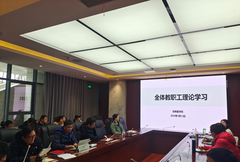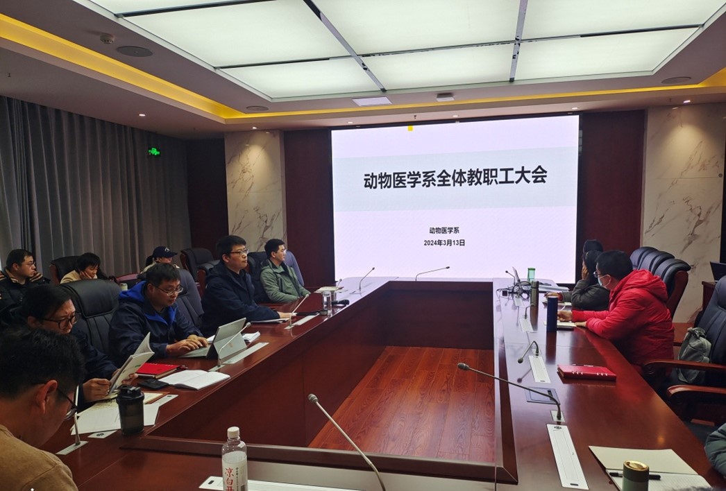 2024年3月13日下午,新学期第一次动物医学系全体教职工大会在大学生活动中心109室召开。动物医学系刘国芳主任主持会议,系部全体教师参加会议。