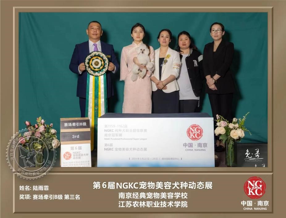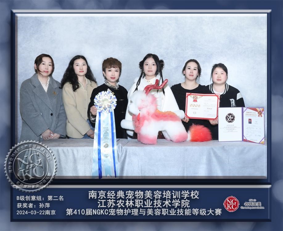 2024年3月22-23日,在全国宠物养护行业融合共同体和名将宠美教育科技(北京)有限公司主办的“世宠会杯”NGKC第410届NGKC宠物护理与美容职业技能等级大赛”和“第6届NGKC宠物美容犬种动态展”在古都南京相继落下帷幕,此次大赛主要由来自华东地区的宠物美容师和职业院校学生100多名选手参加。我院由产业教授陈佳炜老师和叶菁老师带队, 21级宠物养护与驯导专业荆琪、孙萍、陆雨霏、许馨元、杭雨杰等同学参加。