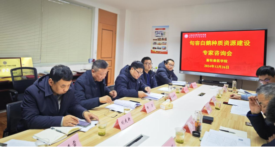 12月26日上午,句容白鹅遗传资源鉴定申报工作推进会在学院三楼会议进行,会议邀请了扬州大学王志跃教授、江苏省家禽科学研究所副所长李慧芳研究员对申请材料审核,出席会议还有镇江市农业农村局祝威总畜牧兽医师、镇江市动物疫病预防控制中心单昊书主任、朱水明兽医师和句容市畜牧兽医站杨杨站长,审计处处长邢军、畜牧兽医学院党总支书记刘庆新、副院长杨剑波以及句容白鹅遗传资源鉴定申报材料主要成员参加了会议,会议由院长汪善锋主持。