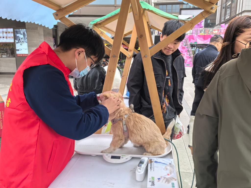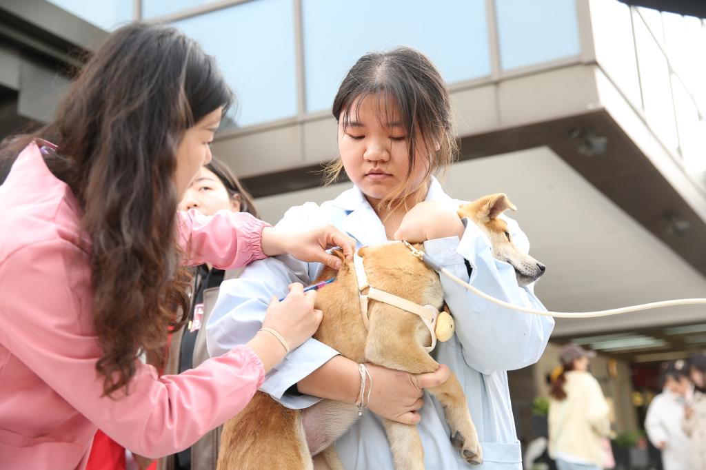活动现场,经过健康筛查的流浪犬在“政-校-企”三方护航下,开启融入家庭的新旅程,为城市文明养犬治理注入专业力量与人文关怀。以我院学生志愿者成为活动主力联合“校企合作”宠物医院共同为待领养犬只完成基础体检、疫苗接种等全流程健康保障。参与本次活动的同学表示:“亲手为流浪犬注射疫苗、记录体征,既是课堂知识的实战检验,更让我们体会到‘生命守护者’的责任。”