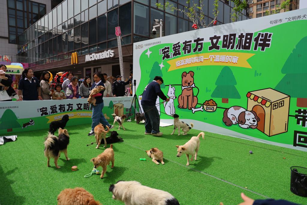 4月12日下午,句容市文明办、农业农村局、华阳街道及多家宠物机构联合我院共同举办首届流浪狗爱心领养日活动。