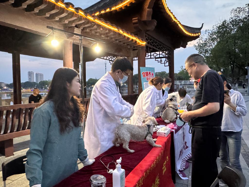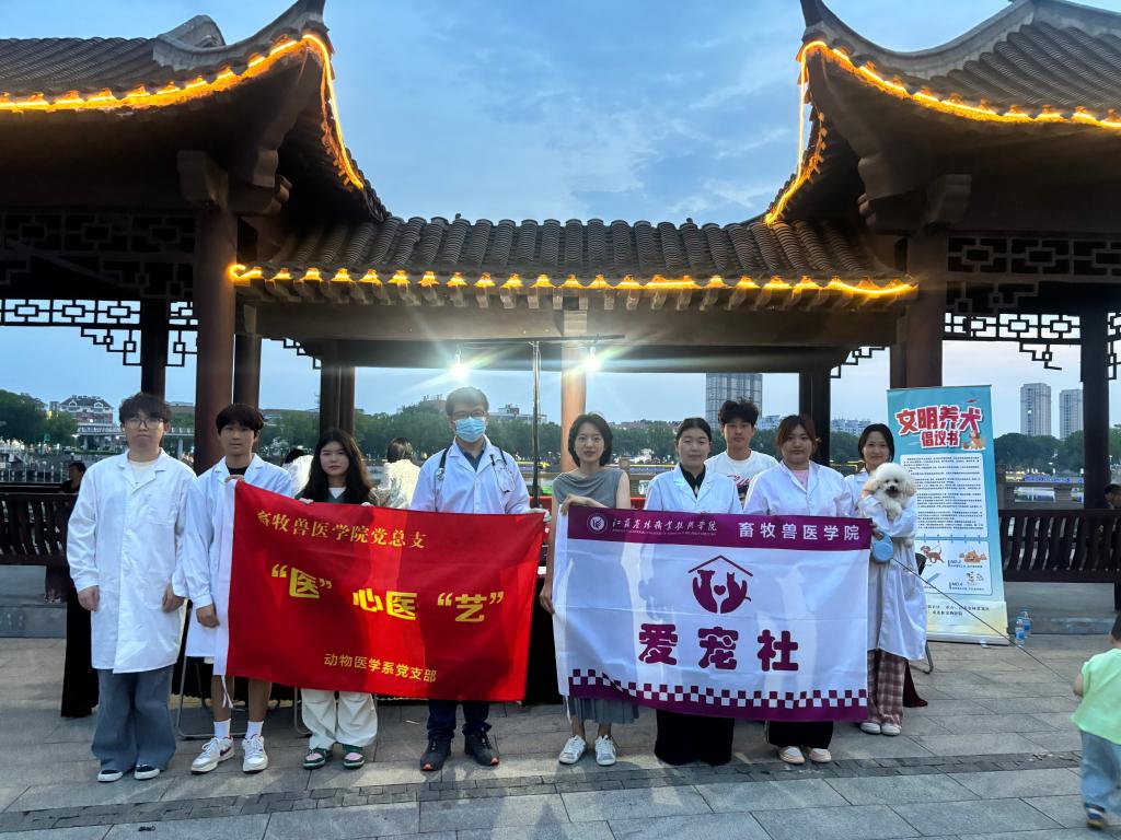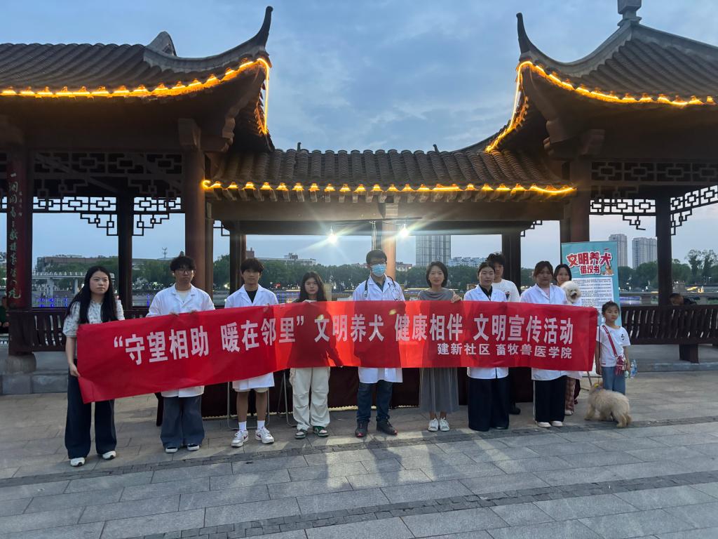 2025年5月14日,畜牧兽医党总支动物医学党支部、学工党支部与句容建新社区在葛仙湖公园联合开展了“文明养犬,健康相伴”的社区公益服务活动,通过爱心义诊活动(体格检查、免费体外驱虫和狂犬疫苗免疫注射),引导居民树立科学养犬意识,营造人宠和谐的居住环境。