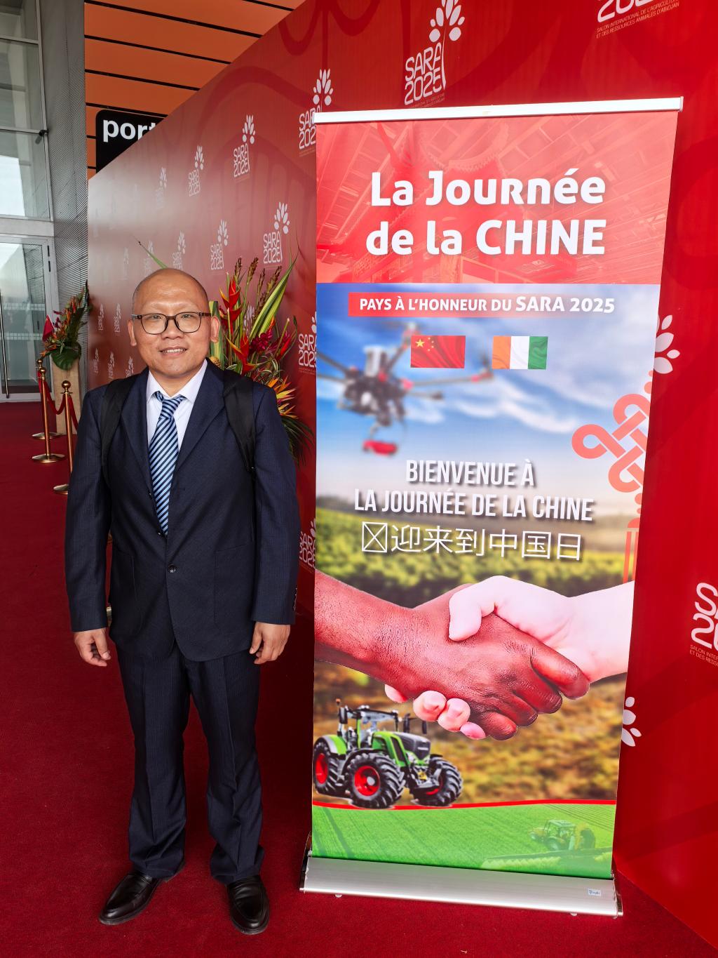 SARA展会由科特迪瓦农业部等四部门联合主办,每两年一届,是撒哈拉以南非洲地区规模最大的农业专业展会之一。本届展会以“建设以实现非洲粮食主权为目标的食品加工体系”为主题,为期10天,设置九大展区,吸引全球近千家企业参展,聚焦农业种植、畜牧养殖、水产渔业、森林资源等领域的贸易投资与技术交流。中国作为本届农展会主宾国,5月24日是中国日活动,参展方在展厅中心设立了红色主色调的中国馆,向观展者展示智慧农业蓝图等中国先进农业技术。