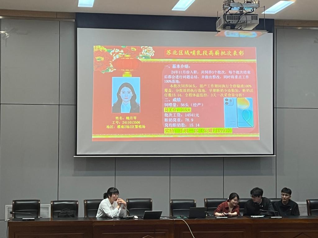 牧原公司灌南分公司的人资经理黄艳带来了精彩宣讲。结合工作实践,紧扣学生关注的职业晋升路径,着重阐述了公司对人才的重视与培养计划,让在场学生对牧原公司有了全面且深入的了解。随后,2022级三名在牧原实习的学生进行经验分享,他们讲述了在牧原实习期间的工作日常、成长收获以及留岗原因,分享了如何从校园人快速转变为职场人的心得,鼓励学弟学妹们把握机会,积极投身实践。