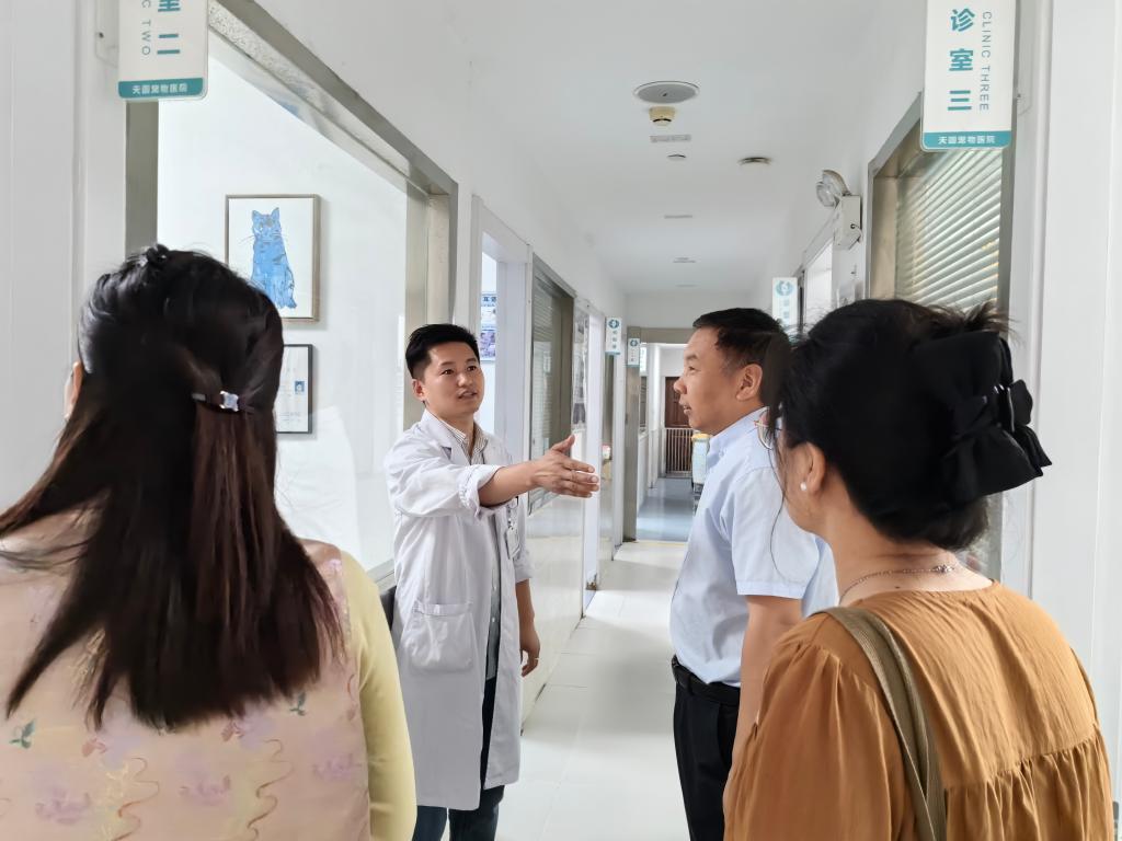5月23日上午,畜牧兽医学院党总支书记刘庆新带队,副院长杨剑波、动物医学系副主任连雪、副研究员那雷、教师李琦琦一行赴南京天圆宠物医院走访毕业校友。教师团队详细了解目前医院经营现状,就学生实习、就业等问题展开了深入交流,以期共建宠物医疗实习基地。