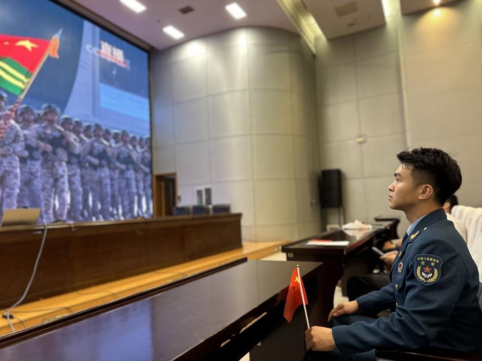上午9时,伴随着铿锵的礼炮声与庄严的国歌声,观看直播的师生神情肃穆,自觉起立,现场氛围庄重而热烈。收看过程中,大家全神贯注聆听习近平总书记发表的重要讲话。当受阅部队各兵种以昂扬姿态依次通过天安门广场时,整齐的方阵、铿锵的步伐、嘹亮的口号、先进的装备让大家深切感受到祖国的强大实力与人民军队的使命担当,民族自豪感与历史责任感在心中油然而生。