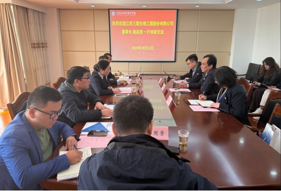 10月23日上午,江苏三联生物工程股份有限公司董事长施启尧一行3人来院交流,会议在综合楼7楼会议室进行。党委委员、副院长王瑾出席交流会,我院党总支副书记、院长汪善锋、副院长杨剑波、相关内设机构负责人及高层次人才代表参加会议。