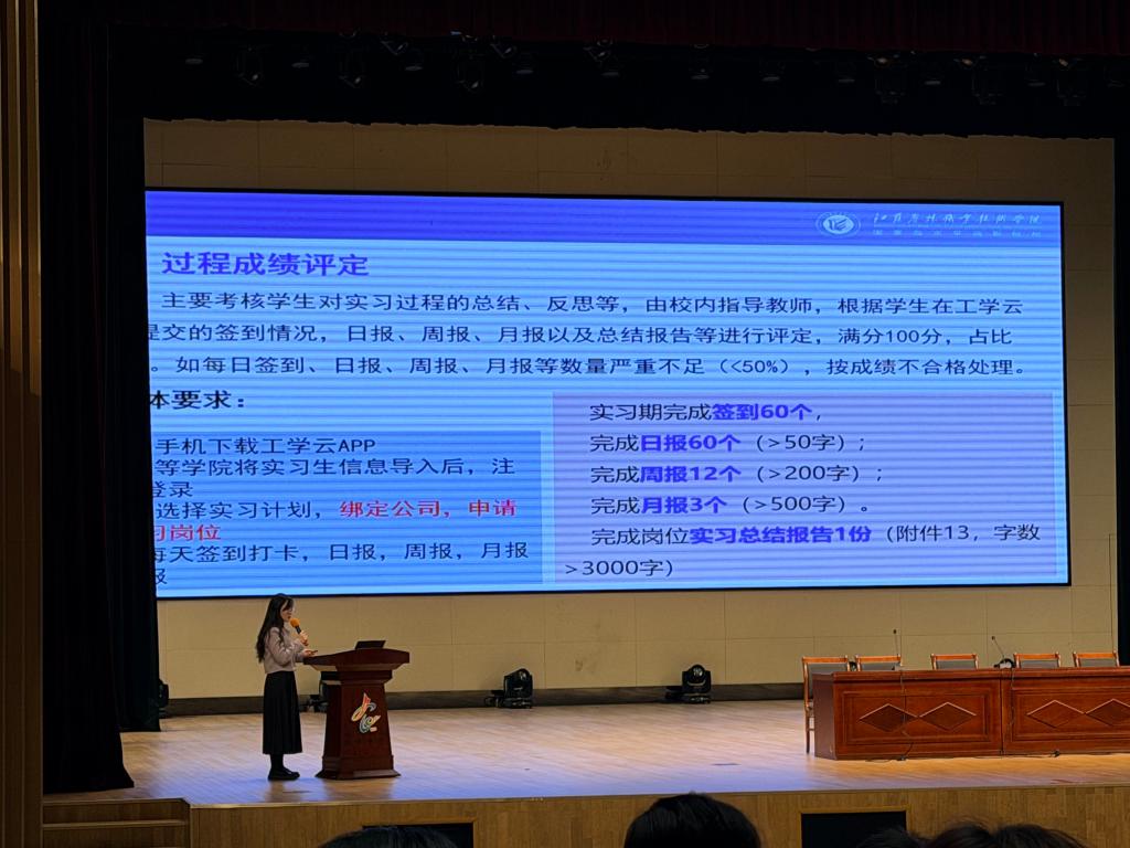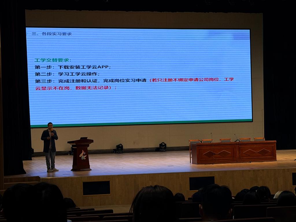会上,各系教学主任解释说明了工学交替和岗位实习的具体要求,着重强调了岗位实习在人才培养体系中的核心地位。从实习的目的意义、具体安排、实习要求、安全保障等多个维度进行了全面介绍,为即将踏入实习岗位的学生们提供了清晰的指引。