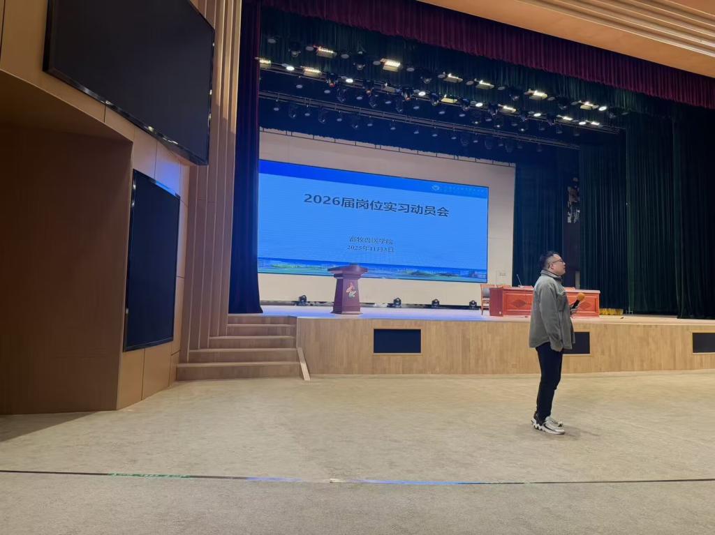 为深入贯彻执行教育部《职业学校学生实习管理规定》及省教育厅《江苏省职业学校学生实习管理实施细则》,确保我院2026届学生工学交替和岗位实习工作的有效实施,强化实习管理,明确实习内容,保障实习质量,我院于11月3日下午在大学生艺术中心举行了2026届毕业生工学交替和岗位实习动员大会。我院党总支书记刘庆新、副书记许俊齐、办公室主任徐云明、各系教学主任、学工就业指导教师及全体2026届毕业生参加了会议,会议由徐云明主持。