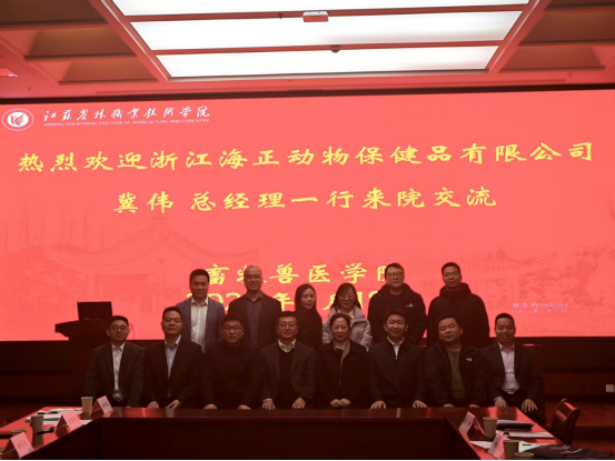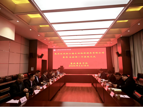 3月18日,浙江海正动物保健品有限公司董事长冀伟一行到访我院,校党委委员、副校长王瑾,畜牧兽医学院院长汪善锋等热情接待。双方围绕深化校企合作、推进产学研一体化发展进行了深入交流,并达成多项实质性合作共识。